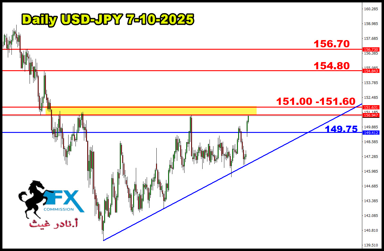 تقنياً لفريم اليومي الصعود الحالي يتطلع الى استهداف 151.60 بشكل اولي، مع الحذر انه العودة للهبوط